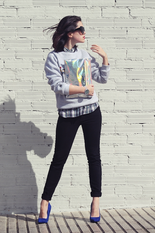 Que chulada la sudadera! me gusta la combinacion con los tacones! el clutch es una pasada!