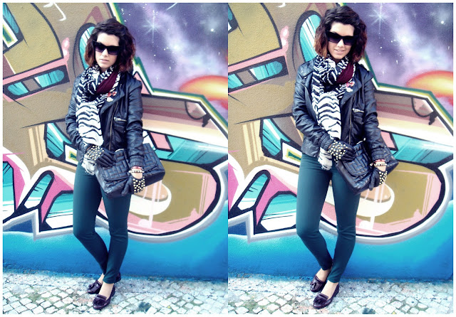 un look muy rockero suavizado por los zapatos, me gusta la combinación.