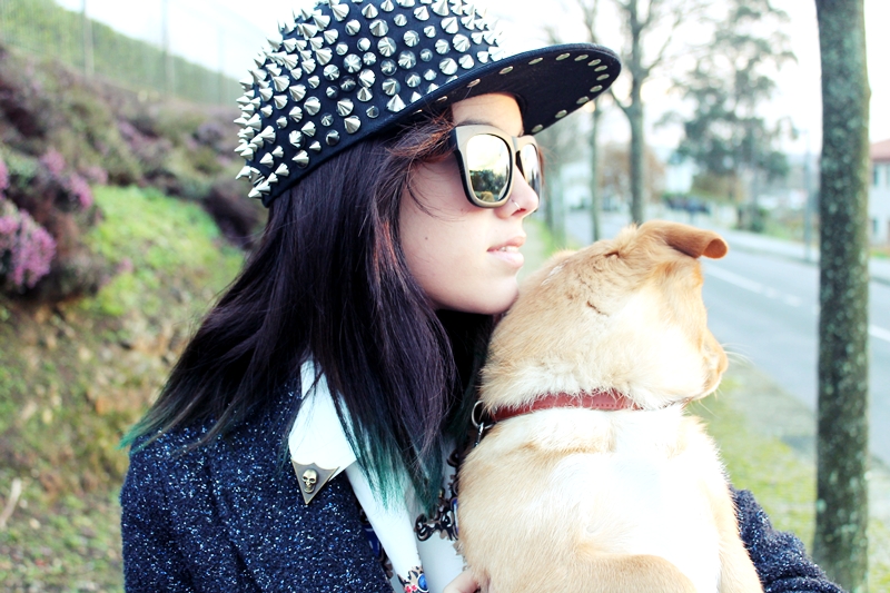 Happy week! I show you my new blouse with crosses from Sheinside, on the neck I put two skull collars that I bought on Ebay. I went to walk with Cuqui, so I wear my fav pants from Wholesaledress, my new sooooo comfy heels from Gina Tricot, and my spike cap.
