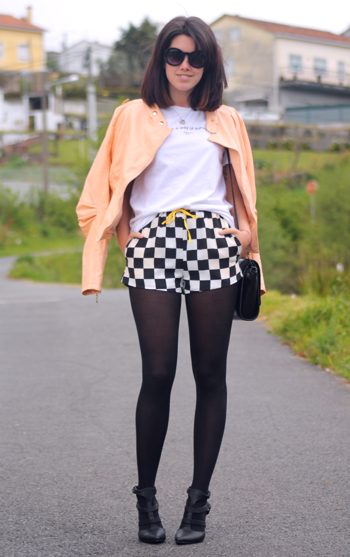 ¡Buenos días! Hoy quiero hablaros de un nuevo descubrimiento, se trata de la tienda gallega Núa Moda, posee cuatro tiendas físicas en Galicia, pero cuenta con una tienda online muy bien gestionada con gastos de envío muy reducidos. Quiero enseñaros esta chaqueta, soy muy fan de las biker, pero las rojas y las negras ya me tienen algo cansada, y esta en color melocotón me parece perfecta, lo que más me gusta es el detalle fruncido del codo y creo que sienta muy bien con los shorts. Estaréis cansados de oír que están inspirados en un tablero de ajedrez y que la idea la tuvo Louis Vuitton, así que no me he podido resistir a ellos debido al precio tan competitivo que tiene Núa, para los que no la conozcáis os la recomiendo.