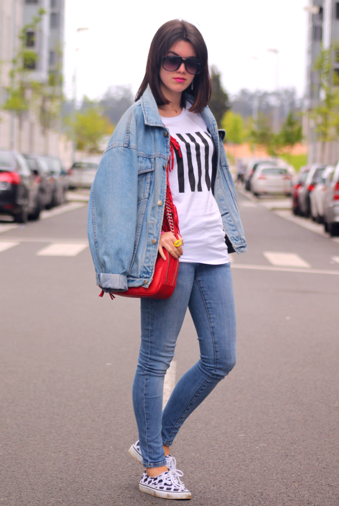 ¡Muy buenos días! Hoy estoy especialmente contenta, además de vuestros comentarios tan bonitos y vuestras visitas de ayer, la próxima semana tendré una sorpresita para vosotros muy especial. Mientras tanto, os enseño un look muy cómodo basado en el tejido vaquero: chaqueta oversize, unos jeans, una básica y mis Vans de Kenzo, algo muy básico y cómodo.
