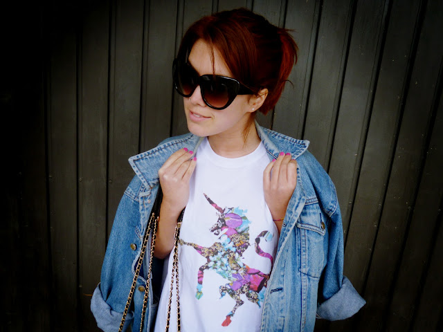 Guapísima! Me encanta el unicornio!! y te queda genial esa cazadora vaquera! un besiito linda :*