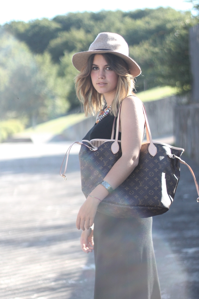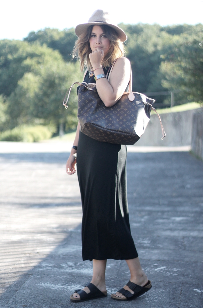 ¡Feliz lunes y buenos días! Comenzamos septiembre, y algunos comenzamos de nuevo la rutina, pero el sol todavía nos acompaña así que os enseño un look muy básico compuesto por un vestido negro, unas sandalias y mi nuevo tesoro, el Neverfull de Louis Vuitton en talla mediana. Llevaba ya mucho tiempo ahorrando para algo así, y como soy muy impaciente, no me pude esperar a ir a la tienda de Madrid e hice el pedido online. Los que me seguís en twitter ya sabéis el proceso, y aquí está el resultado 🙂 He decidido invertir en un sólo bolso y dejarme de comprar tantos bolsos en otras tiendas que sólo me duran una temporada, así que ahora toca seguir ahorrando para el siguiente. Espero que os guste el look, y¡ os mando millones de besos!