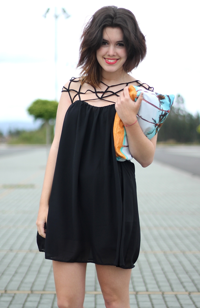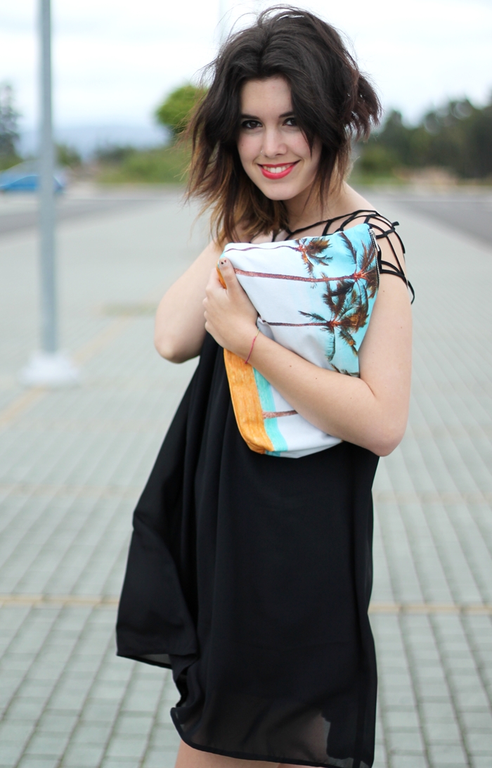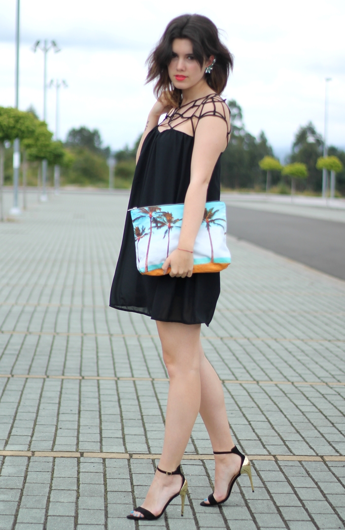 ¡Buenos días! Siento mucho no estar actualizando todos los días ni visitando vuestros blogs, pero no tengo casi tiempo. De todas formas, aquí estoy para enseñaros un nuevo look. Esta vez el look de mi graduación. Como sabéis, elegí un vestido sencillo en color negro, quería algo que me sirviese para otras veces, sin embargo quería que tuviese un detalle especial y su parte superior lo es. Como no quería parecer de funeral, lo decidí combinar con un clutch de Samudra lleno de palmeras y vistas muy caribeñas que aportan alegría a un look sobrio, y el toque del earcuff. Quería ir arreglada pero con un toque desenfadado, detesto esos looks de boda, con mega peinados para una ocasión así. Ese día llevé el pelo ondulado, en estas fotos está algo despeinado por el viento, pero en resumen este fue el look que decidí llevar.