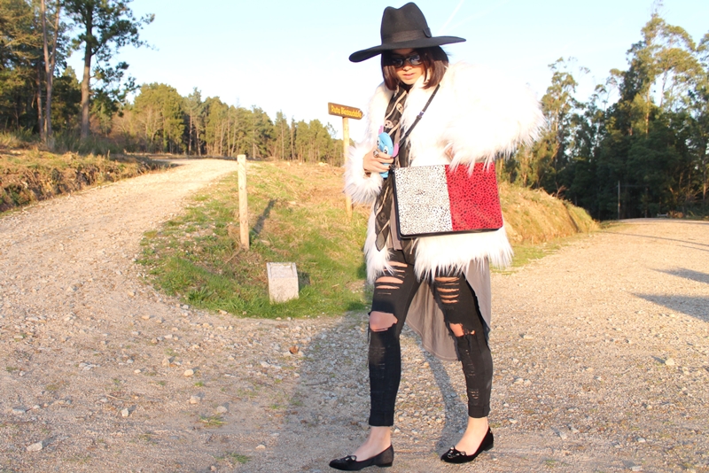 Sin duda estás fantástica. Un look muy atrevido y divertido. El sombrero es espectacular y respecto al bolso…¡qué rabia que esté tan rebajado en Portugal y que aquí nada de nada! Es precioso.