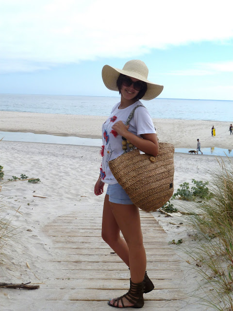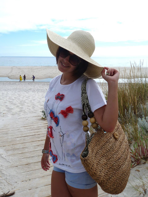 qué bonita la camiseta, es muy original! y la cesta para la playa me encanta 🙂