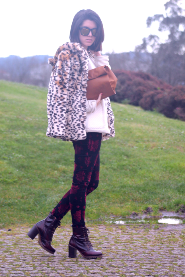 ¡Feliz sábado! Hoy estoy muy feliz, y os voy a explicar el motivo dejando entrever un poco más de mi vida personal. Soy de A Coruña, pero por motivos personales entre el 2004 y el 2009 me fui a vivir a Santiago, como no tengo mucha devoción por la capital (que nadie se sienta herido) me he ido de nuevo a Coruña a estudiar mi carrera, ahora me he tomado un parón en mi último año, por tanto estoy en Santiago toda la mayor parte de mi tiempo, ¡pero este fin de semana no! Siempre ando de un lado para otro,voy un día y vuelvo.. pero este fin de semana estaré enteramente allí, de ahí mi felicidad. Os dejo con la entrada nº200, con un look cómodo y mezclando tendencias, el abrigo de leopardo y las flores de terciopelo del pantalón. Disfrutad muchísimo de vuestro fin de semana, volveré el lunes con las pilas cargadas, y millones de gracias por todas vuestras visitas.