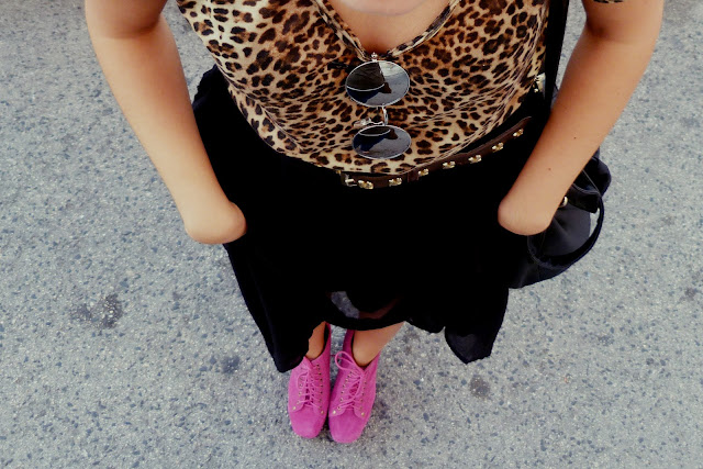 Oye, qué guapa que eres, qué envidia, jeje. Y me gusta mucho como lo llevas TODO. El leopardo, la falda vaporosa y tus JC rosas. Joder, nunca las había visto de ese color. Adoro el rosa.