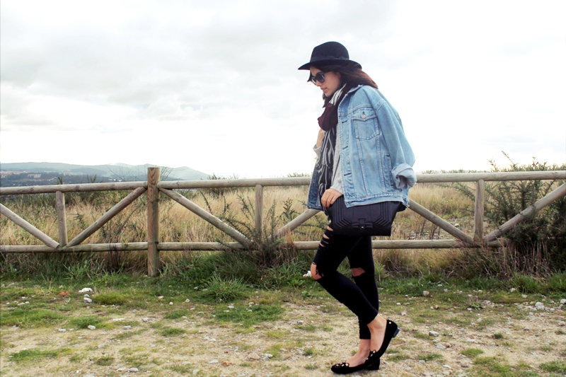 ASOS kitty flats, ZARA bag and foulard, WHOLESALE pants, VINTAGE jumper and jacket,H&M hat, MISTER SPEX rayban wayfarer sunglasses.