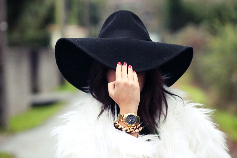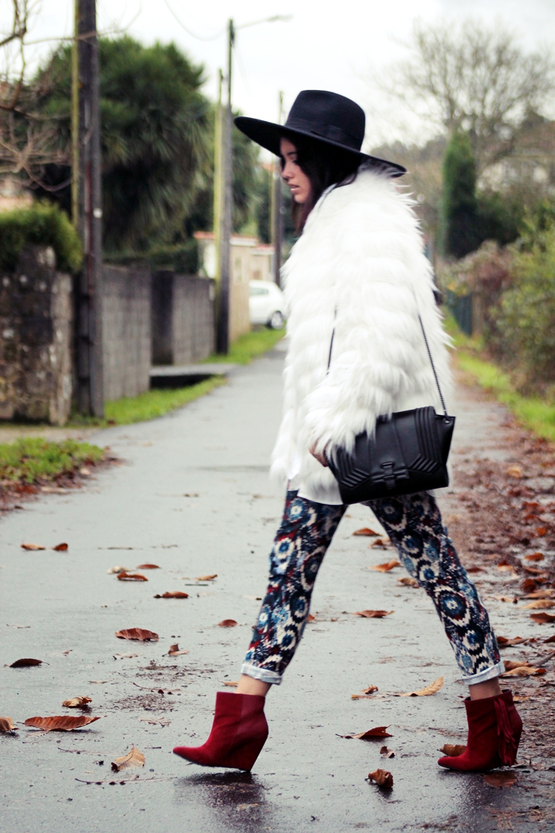 GOJANE booties, ZARA pants,blouse,necklace,hat and bag, SANFIM bracelet, ASOS watch, STRADIVARIUS fur coat.