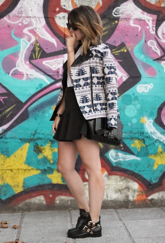 ¡Buenos días de lunes! Tengo tantos post atrasados que aún tendréis fotos con pelo largo durante esta semana :p Lo bueno de tener una tienda y vender en ella cosas que te gustan, es que muchas puedes quedártelas, y eso he hecho con la falda «ruffle» y la cazadora azteca. En cuanto la vi, supe que tenía que ser mía, el diseño es original y diferente y tiene algo que enamora, y en los pies, las ya clásicas cut-out. Y digo clásicas, porque creo que soy «una más» con ellas, pero no he podido evitarlo, a veces soy un poco víctima de las tendencias :p Muchas gracias por vuestras y visitasr y recordaros que aún podéis apuntaros al sorteo de 100$ de Sheinside AQUÍ. Muchos besos!